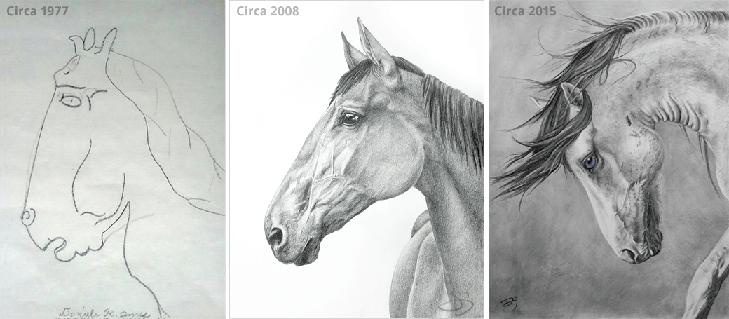 I drew the horse on the left around age seven. The two on the right are a little more recent. I hadn't seen the childhood drawing in ages and I had to laugh when I realized the similarities.